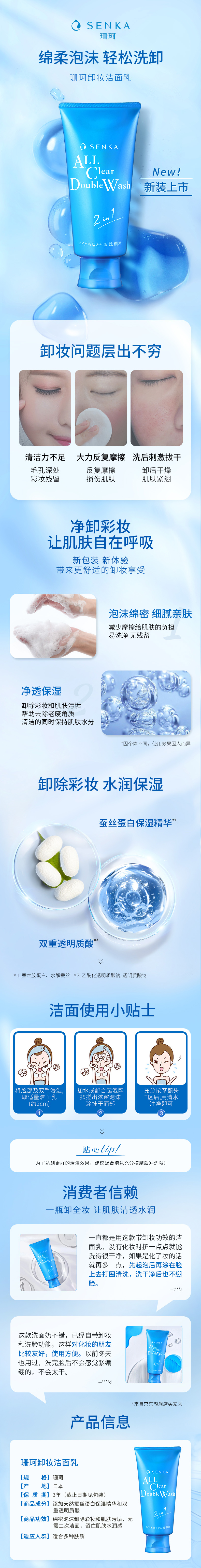 彩妆及皮脂污垢一次卸除干净。卸妆洁面一支搞定!