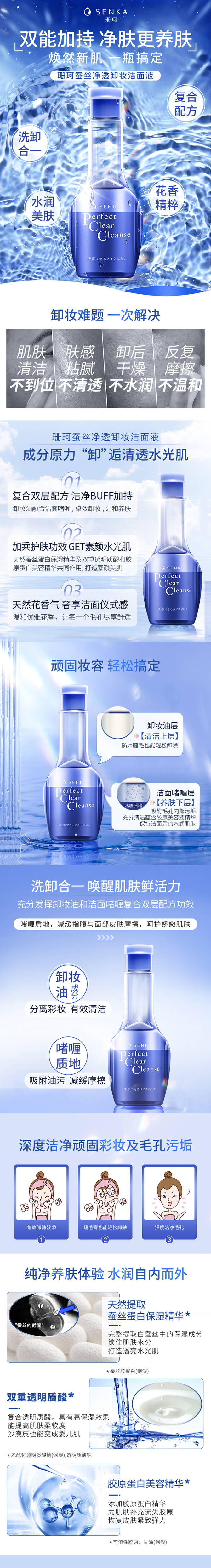 卸妆同时清洁肌肤,洗卸合一,双能加持。 无需二次洁面,一瓶搞定。
